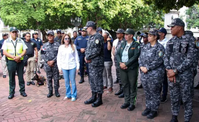 SANTO DOMINGO.- La alcaldesa del Distrito Nacional, Carolina Mejía, junto a mandos de la Policía Nacional, encabezó el lanzamiento del plan piloto de seguridad ciudadana en la Ciudad Colonial, Distrito Nacional, medida ejecutada por el mayor general Ramón Antonio Guzmán Peralta, director general de la institución del orden.