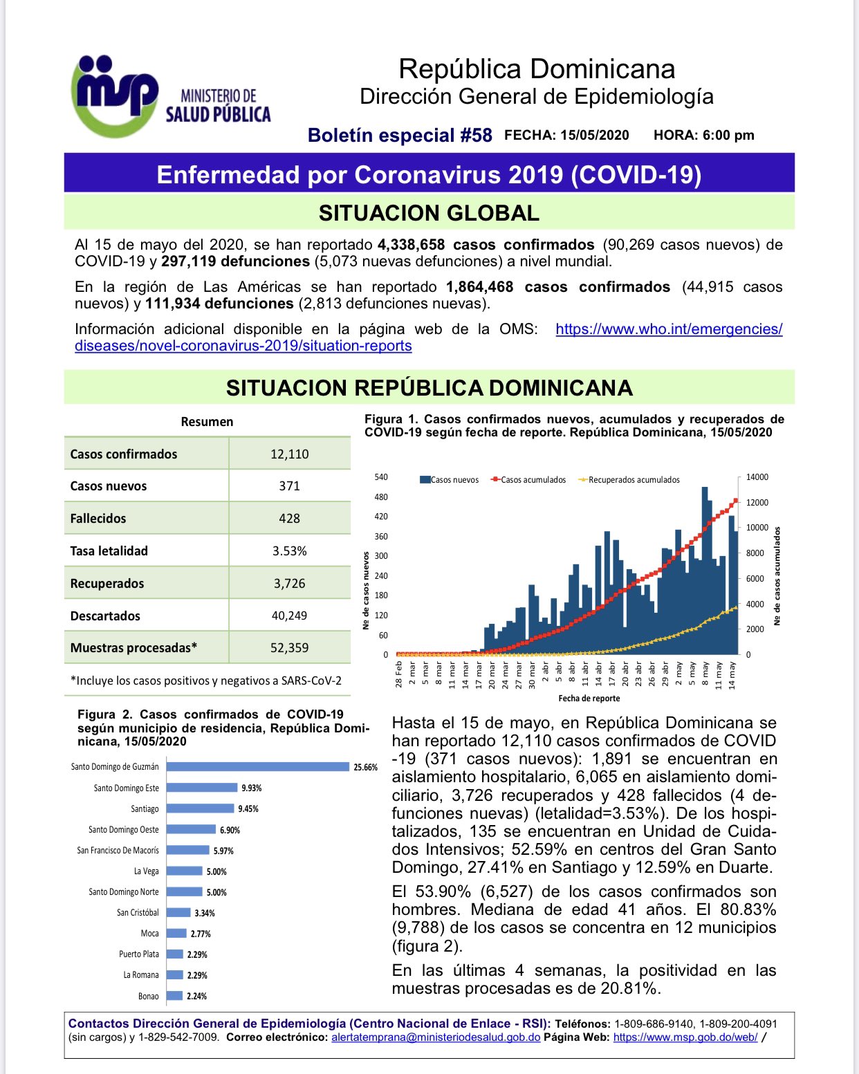 Según el boletín número 58, los casos nuevos son 371 y una tasa de letalidad de 3.53%.