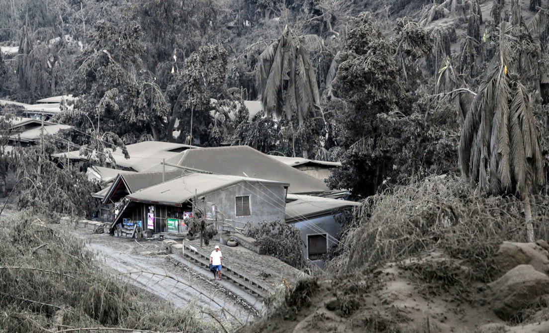 La ceniza procedente de Taal también provocó el cierre de escuelas y negocios, así como el desalojo de unas 8.000 personas que viven en la zona de riesgo.