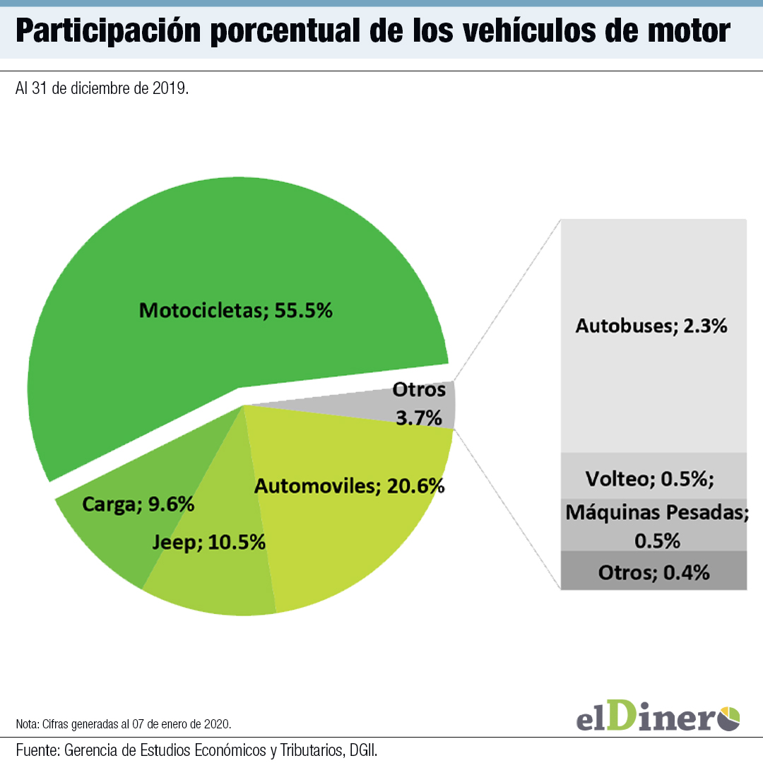 De los 87,047 vehículos de nuevo ingreso, las motocicletas continúan ocupando la primera posición, con 57,160 unidades, representaron el 66% de las importaciones, según datos de la DGII.