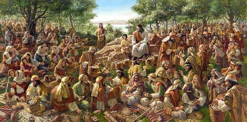 Como ya se hacía tarde, se acercaron sus discípulos a decirle: «Estamos en despoblado y empieza a oscurecer. Despide a la gente para que vayan a los caseríos y compren algo de comer». Pero Jesús les replicó: «No hace falta que vayan. Denles ustedes de comer». Ellos le contestaron: «No tenemos aquí más que cinco panes y dos pescados». Él les dijo: «Tráiganmelos».