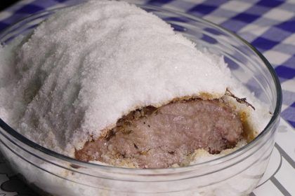 Cocinar al horno un lomo de cerdo a la sal es muy fácil. La sal hace de barrera para evitar que los jugos del lomo se escapen. Y eso da como resultado una carne tierna y jugosa, bien especiado y en su punto óptimo de sal, lejos de lo que puede aparentar por la cantidad de ésta que vamos a utilizar para prepararlo. Lo vamos a hornear en torno a una hora. Tiempo más que suficiente para preparar una guarnición de patatas fritas o de lo que más te guste. O simplemente, para no hacer nada. Esta receta es muy simple y fácil y da para una buena cantidad de raciones. Si quieres preparar un lomo de cerdo a la sal al horno, aquí puedes ver cómo se hace.
